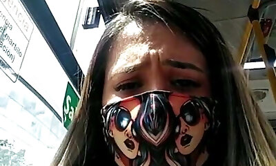 B3D2301- Wife with a enormous butt being mischievous by a molester on the bus