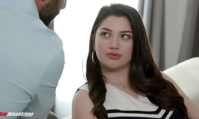 Nympho Eliza Ibarra and her timid girlfriend guzzle humungous stepdad's dick