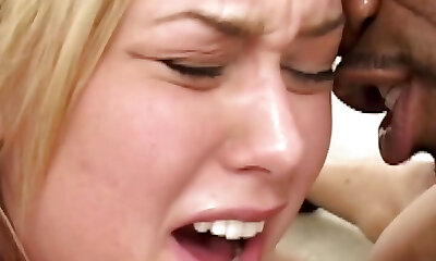 Unstoppable interracial shagging ends with cum necklace for Busty Blondie