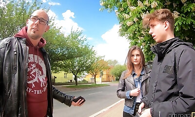 Unlucky man loses in a poker game so his GF Iris Bloom rides a stranger