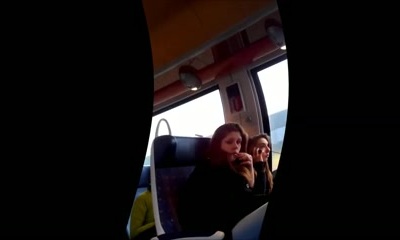 Public cock showing and masturbating at 2 girls on the train