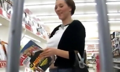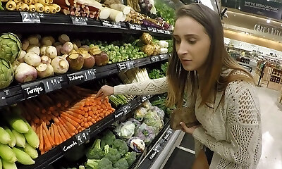 Inspiring senorita visits the supermarket for the nasty flashing