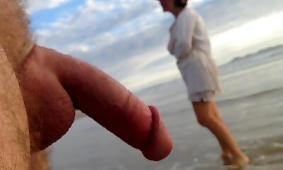 Public erection CFNM beach encounter between lady and male exhibitionist