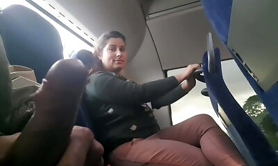 Voyeur seduces Milf to Gargle&Jerk his Fuck-stick in Bus