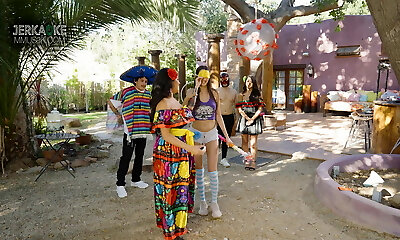 les gens en costumes verts hilarants aiment la fête de gangbang de switch sides