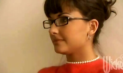 Nerdy nymph with huge glasses and the pulsating boner