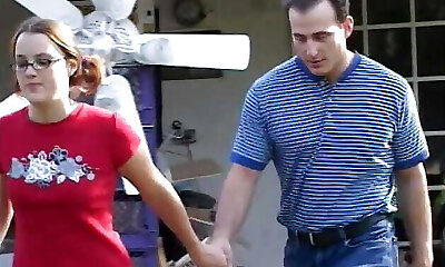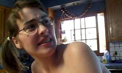 Barely 18 slut in specs blows pop's big stiff cock then gets cum in rosy pussy