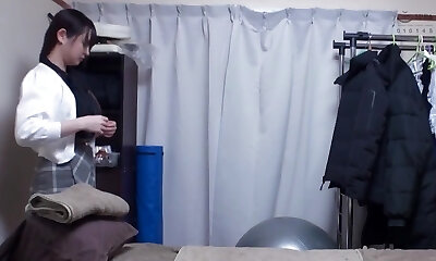 Japanese teen gives her boyfriend a massage and finishes up providing him her cunt to fuck until she comes on his boner