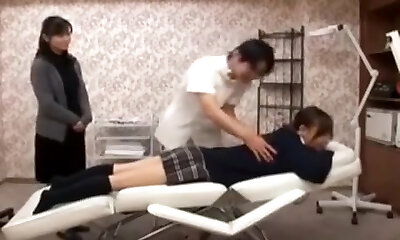 Japanese wifey gets massged while husband waits