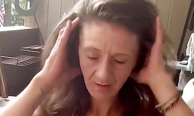 Terrific ash-blonde MILF with big mammories gets her tasty quim licked