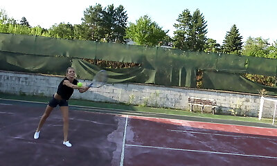 Tennis instructor meets ultra-cute tennis player and has torrid spirited oral and anal sex on the tennis court