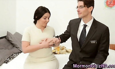 Tempting dark haired student gives blowjob fuck to erected dick of her BF