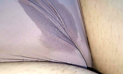 Petite girl wanking in panties. Transparent panties, rubbing her hairy pussy she gets climax. Red and tight