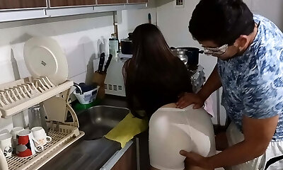 Hindo Latina Step-sister Fucks with her Cousin in the Kitchen Cum in Mouth and Eats Cum