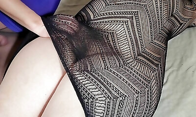 Bootylicious seductress in fishnet bodystocking porks her pussy with her pink dildo