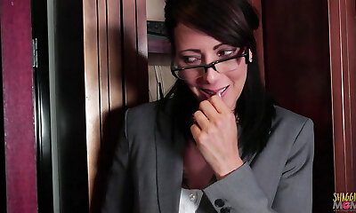 Dark Haired hottie Anissa Kate riding a cock after slobbering on it