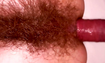 schlanke, super behaarte milf macht anal und spritzt viel