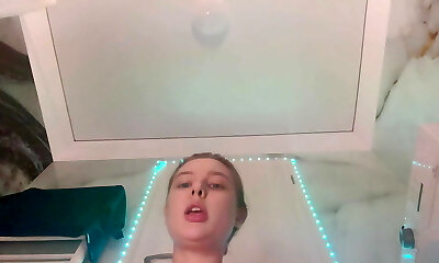ultra-cute platin-blonde teen tying hahn-quetschen vagina vor der webcam