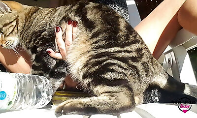 nippleringlover outdoor flashing pumped muff & pierced nipples - inserting meaty rings in swollen pierced pussy lips