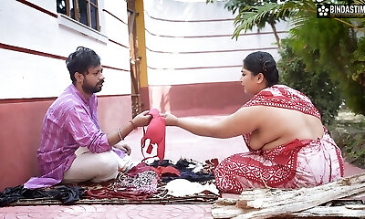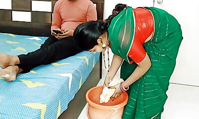 Indian maid, Bhabhi is regularly having hookup with her employers son instead of doing her job