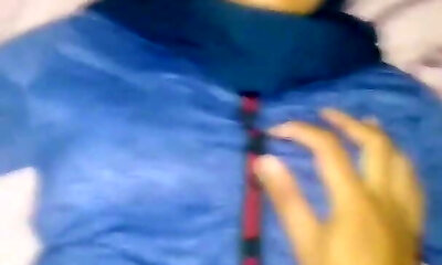 My husband plays with my saggy tits and brutally paws my nips