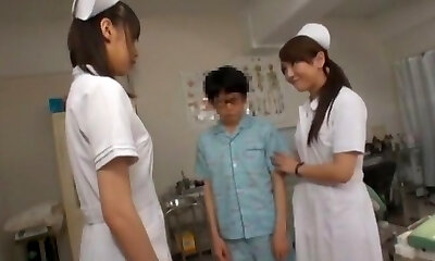 Japanese nurses drop their panties to ride two lucky patients