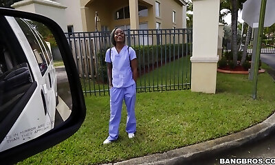 Bi-racial fucking in the car with cute ebony nurse Lexxi Deep
