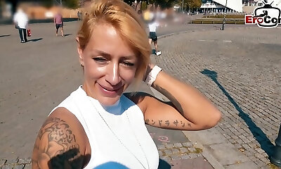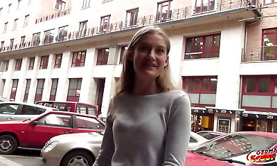 Fresh naturally looking platinum-blonde hottie Eva wanks dick of plump fellow