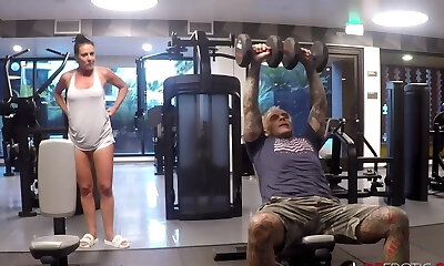 Big Dick old Man seduce Huge Boobs Fitness MILF Cindy Behr to Poke in Gym