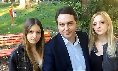 Senior man with a hard dick gets pleasured by Bibina Xox and Lilie M