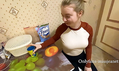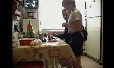 Hefty and gross matured wife changes her clothes in kitchen on spy cam